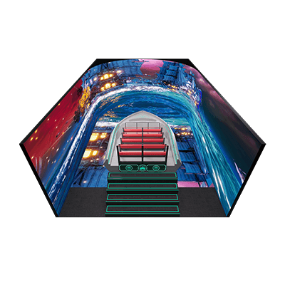 全景旋轉沉浸式體驗,多自由度全方位動感平臺,精準模擬前傾、后仰、左傾、右傾、墜落、顛簸!更有專門針對眩暈研發的上升、下降動作,徹底解決眩暈體驗,極限飛越動作幅度更大,動感體驗更刺激,題材豐富、交互性強,立體環繞音響,包圍式音效;盡亨突破次元壁壘的神奇之旅。